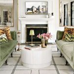 Si el sofá es grande, lo ideal es optar por piezas más sencillas y livianas en tonos neutros o madera clara. Esto ayuda a que el sofá se convierta en el elemento principal sin que otros muebles resten atención. Para las mesas de centro o auxiliares, materiales naturales como la madera o el mármol pueden aportar un aire fresco y elegante. Para quienes prefieren un estilo más contemporáneo, las mesas metálicas en acabados dorados o cobrizos brindan un toque sofisticado y moderno que complementa perfectamente este tipo de decoración.